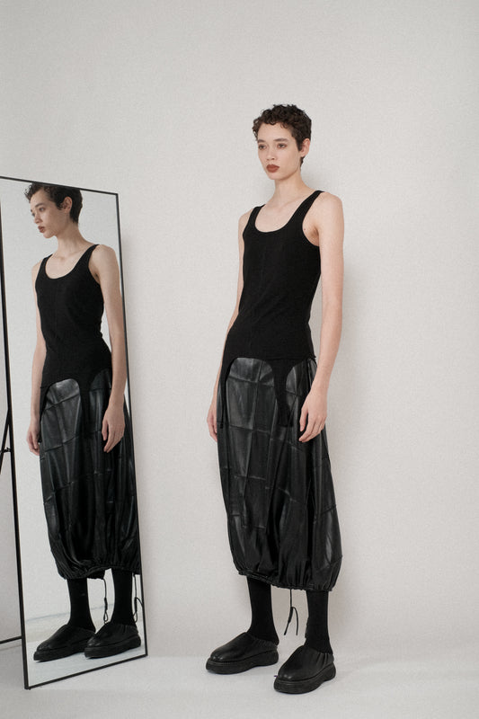 • Vegan Leather Pintuck Shirred Bubble Skirt