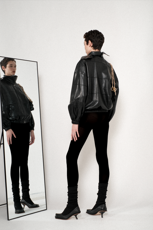 • Vegan Leather Pintuck Detachable Collar Jacket
