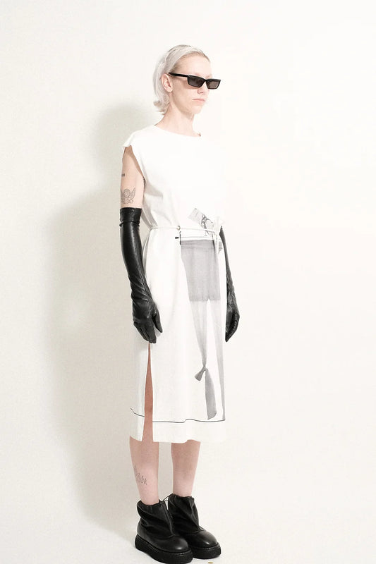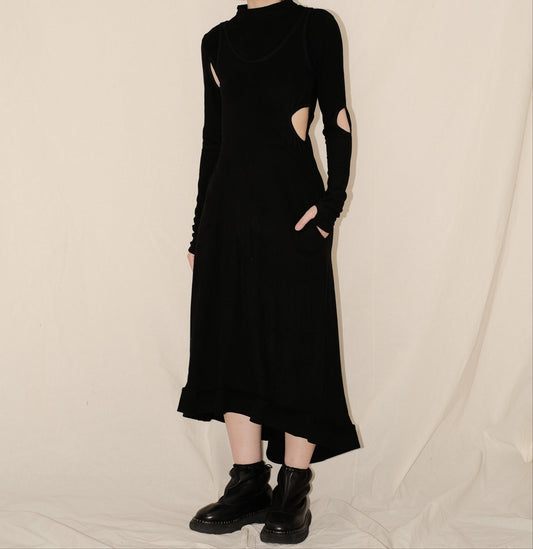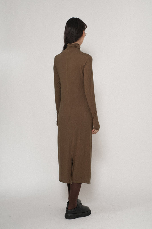 Tencel Wool Jersey Foldover Collar Slit Dress