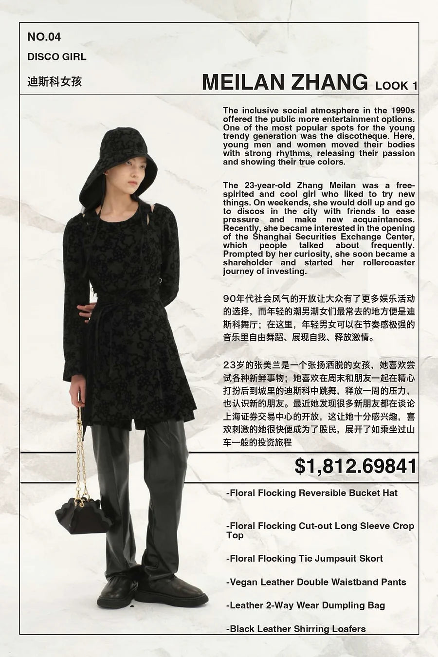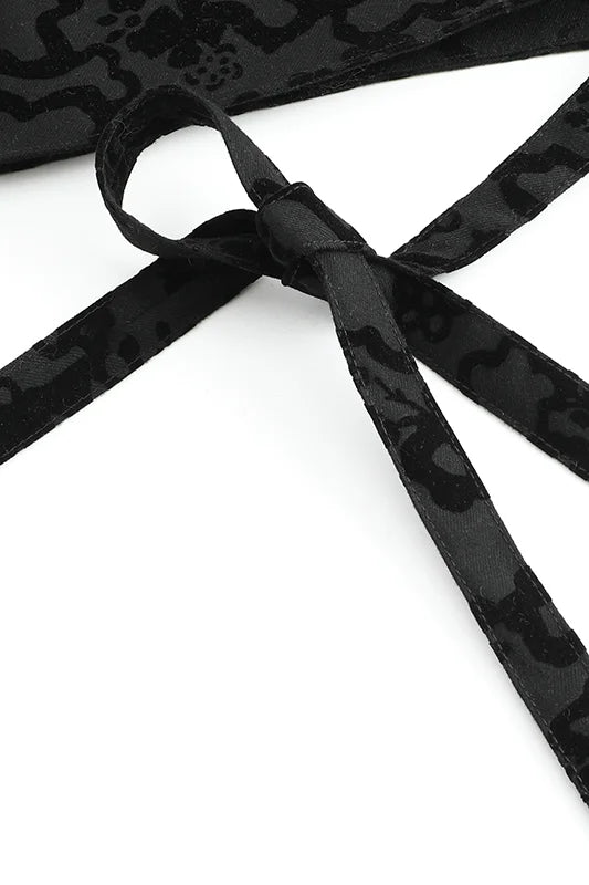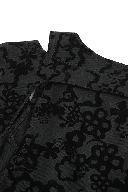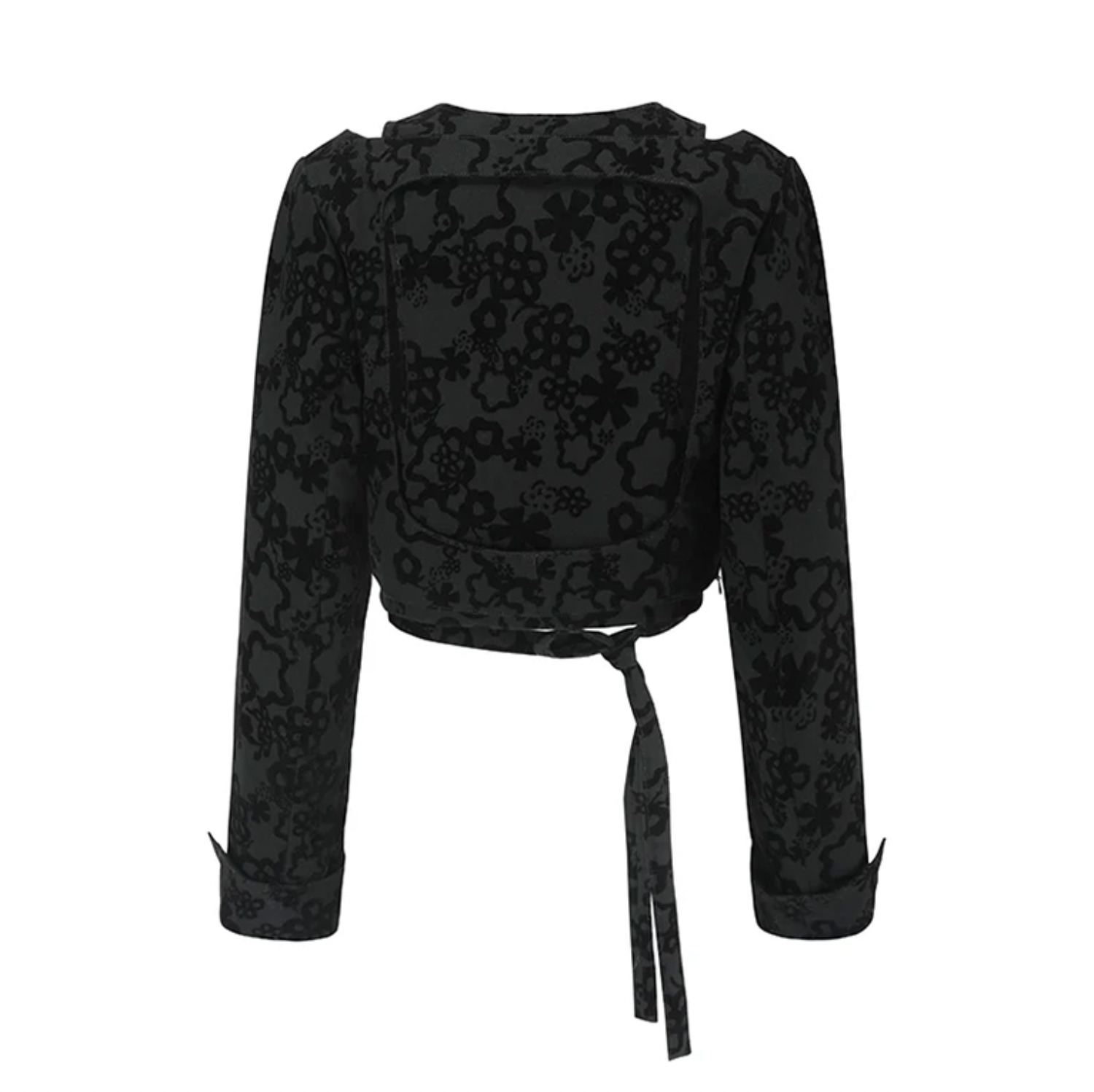 Floral Flocking Cut-out Long Sleeve Crop Top